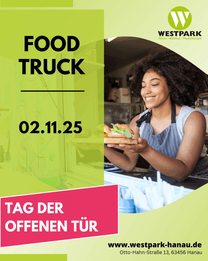 Auch für gutes Essen ist gesorgt! Natürlich soll beim Tag der offenen Tür im Gesundheitszentrum Westpark nicht nur Bewegung, sondern auch Genuss nicht zu kurz kommen. Damit ihr euch nach dem Auspowern bei unseren Kursen und Aktionen stärken könnt, haben wir für euch einen Food Truck direkt vor Ort!