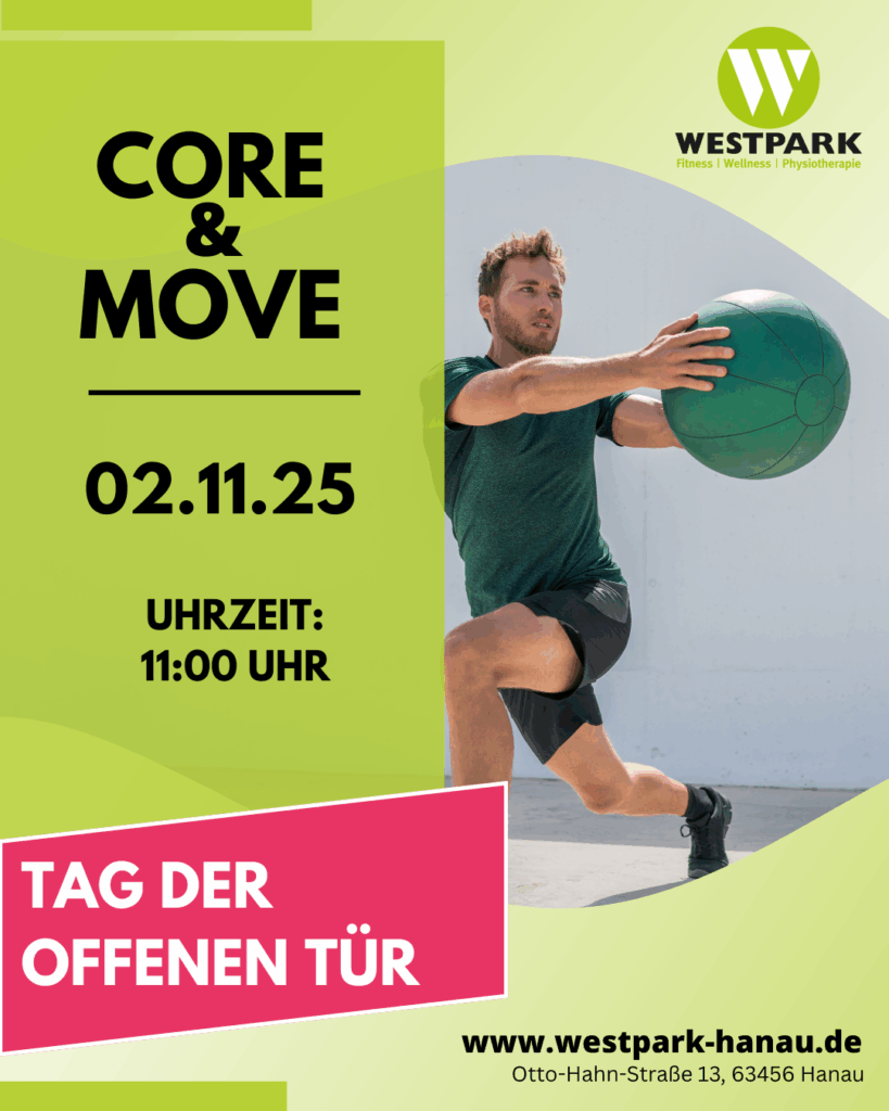 Am Tag der offenen Tür im Gesundheitszentrum Westpark hast du die Möglichkeit, bei unserem Core & Move Kurs aktiv mitzumachen und zu erleben, warum eine starke Körpermitte so entscheidend ist in jedem Alter.